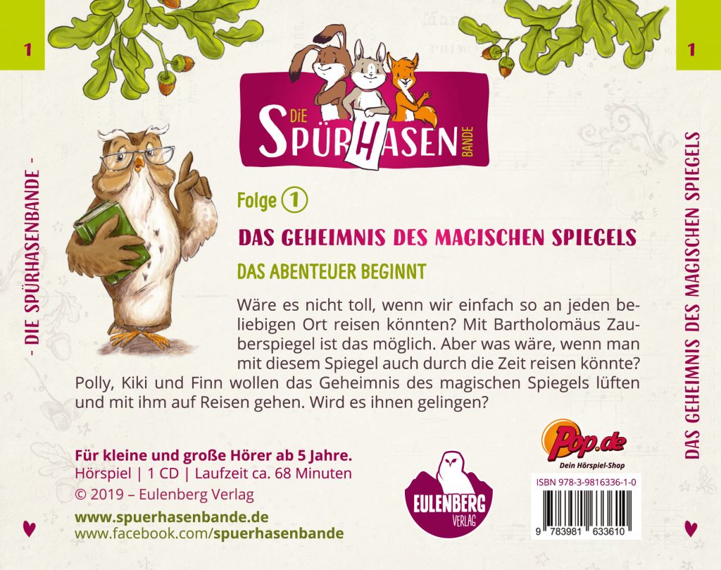 Der Titel von Folge 1 lautet: „Die Spürhasen-Bande. Das Geheimnis des magischen Spiegels. Das Abenteuer beginnt.“